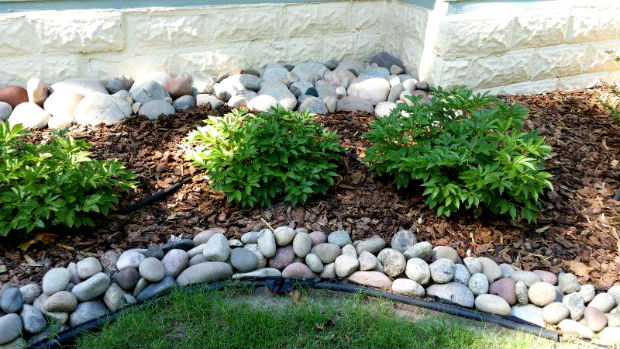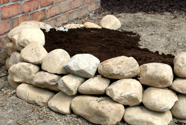 Как украсить клумбу камнями.