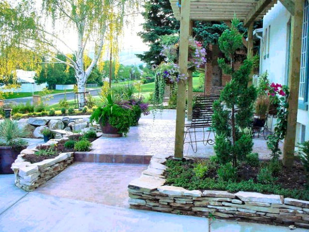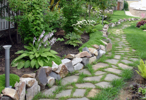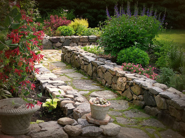 Теплый оттенок камней привнесет в оформления участка нотки света и тепла.