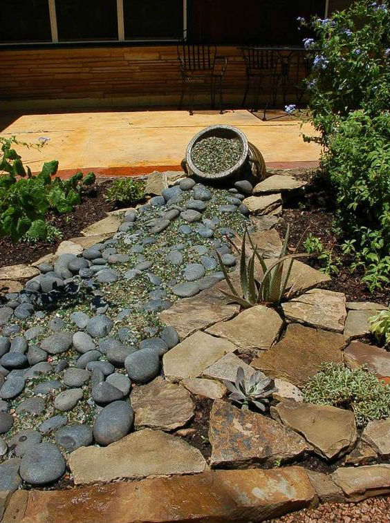 Из камней типа гальки можно создавать импровизированные речки, в роли «воды» как раз и будут выступать камешки.