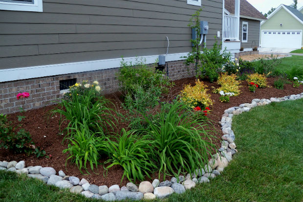 - Как украсить клумбу камнями.