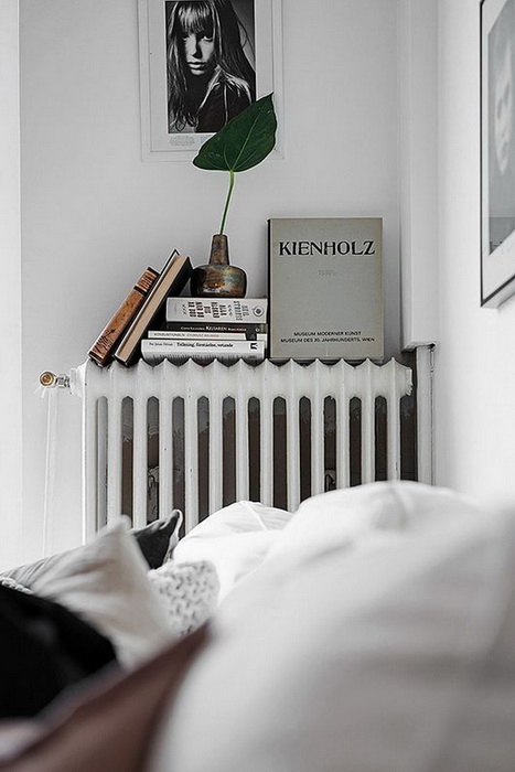 Старые радиаторы в летний период смотрятся слишком сиротливо и неактуально. Чтобы это не бросалось в глаза, можно украсить батарею книгами.