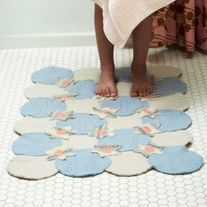 • Все! Вот еще один стильный и яркий коврик готов верой и правдой служить в вашей ванной комнате.