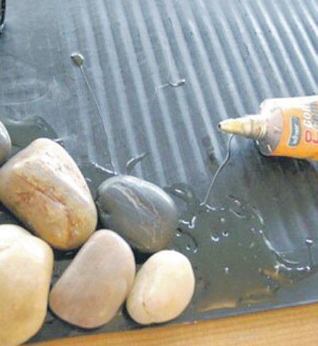 Используйте только клей, устойчивый к влажной среде. Иначе камни будут со временем отклеиваться от основы.