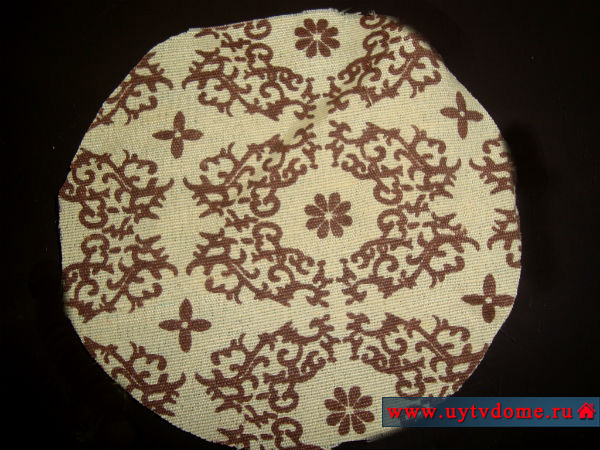 ► Из ткани вырезаем прямоугольник по ширине и длине внутренней части корзинки, а также кружок по диаметру дна из CD-диска. Сшиваем их вместе с изнаночной стороны, выворачиваем, сверху подгибаем будущую подкладку внутрь и отпариваем утюгом.