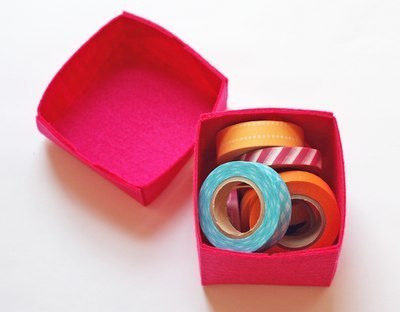Коробочки своими руками. Используем тонкий фетр, тонкий войлок, ткань, хорошо держащую форму. Делаем выкройку нужного Вам размера, размечаем, вырезаем. Сгибаем, можно с помощью линейки. Закрепляем стенки (клеевой пистолет, нитки). Коробочка готова. Верхняя часть коробочки чуть шире нижней, учтите при раскрое.