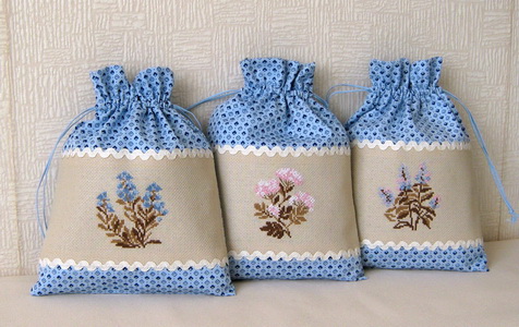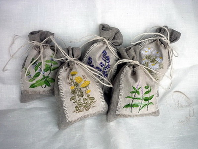 Если Вы любите запахи трав и с удовольствием используете сухие травки в быту, Вам просто необходимы будут эти холщовые мешочки. В них можно будет хранить разнообразные травки для заваривания чая. Использовать в качестве саше и хранить их в комодах и шкафах. Можно держать саше в спальне на тумбочке возле кровати или прятать под подушкой для крепкого и спокойного сна. Вышейте эти маленькие мешочки и заполните их любимыми душистыми травами.