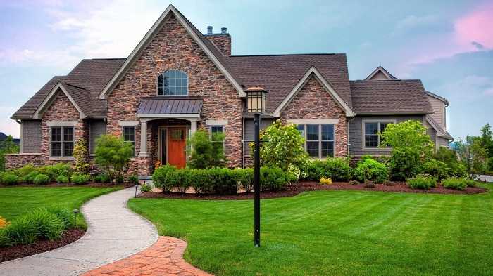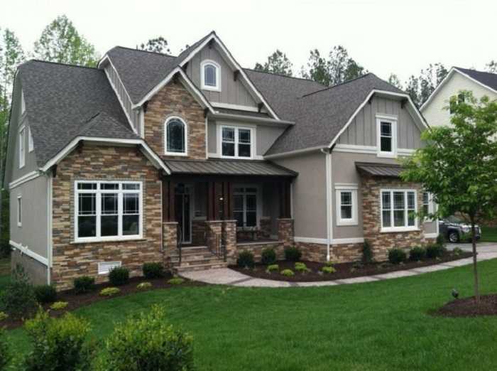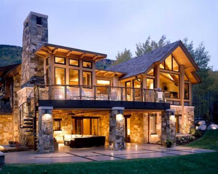 Первое, что бросается в глаза на приусадебной территории — это фасад дома, поэтому ему стоит уделить особое внимание. Это, своего рода, визитная карточка дома, которая составляет первое впечатление о постройке и проживающей в ней семье. Даже большой красивый дом с неприметным фасадом потеряет свою эстетическую ценность. В оформлении существует множество вариантов с возможностью применения как натуральных, так и искусственных материалов для отделки. На фото можно увидеть, насколько величественно смотрится фасад дома с отделкой из натурального камня.