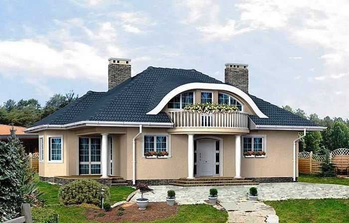 Продуманный красивый дом может быть довольно компактным, и при этом иметь множество выходов, пристроек, эркеров и прочих архитектурных форм, которые обеспечат комфортное размещение разнофункциональных зон.