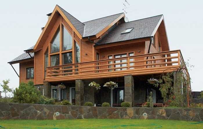 Экономичным методом облицовки является сайдинг и обшивка деревом. Деревянный фасад будет выглядеть просто, но довольно опрятно и удачно подчеркнет современную стилистику постройки. Красивый дом с облицовкой сайдингом под плитку или натуральный камень, как показано на фото, будет иметь довольно оригинальный вид.