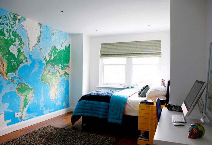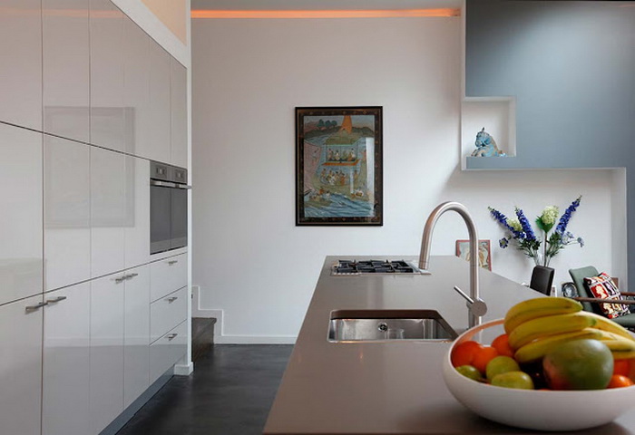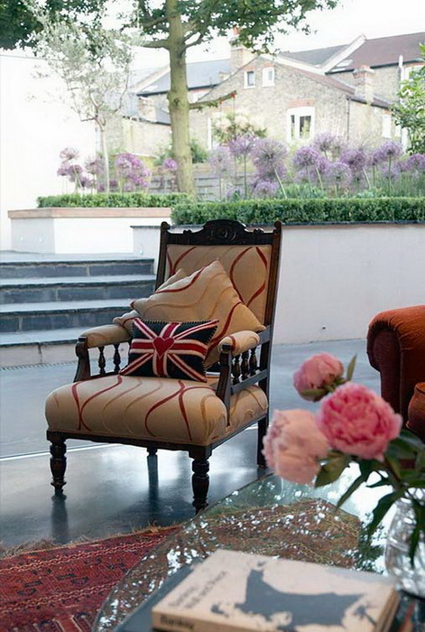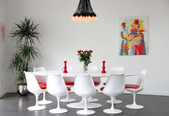 Интерьеры верхних комнат выполнены с учётом индивидуальных пристрастий каждого члена семьи, но настойчивый красный цвет настигает интерьеры повсюду и объединяет всё пространство.