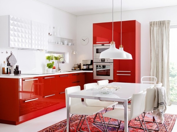 Кухня для хозяюшек всегда была, есть и будет оставаться одним из важных помещений в доме. Ведь в ней они проводят значительный промежуток времени не только за завтраком, обедом и ужином, но и готовя еду для всех этих трапез, убирая посуду после приема пищи. Поэтому очень важно, чтоб женщина могла чувствовать себя комфортно и гармонично на кухне. Для этого необходимо определиться с ее дизайном и цветовой гаммой, которая будет определенным образом влиять на настроение и вдохновение хозяюшки. Сегодня Dekorin покажет вам как выглядит красная кухня фото в интерьере и расскажет о том, с какими вспомогательными цветами ее лучше сочетать и о влиянии цвета на человека.