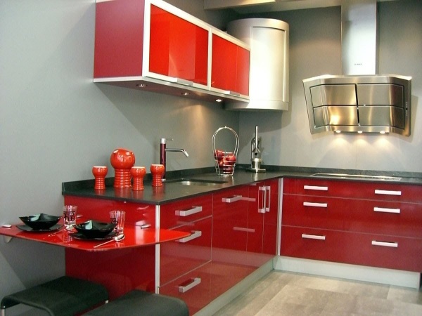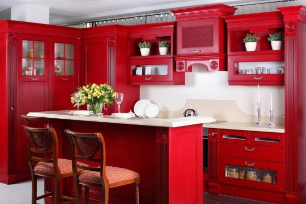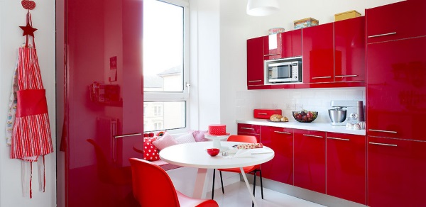 Динамизм кухни в красных тонах подходит не для всех. Выигрышным вариантом он может стать для категории творческих и целеустремленных людей, которые способны преодолеть различные препятствия.