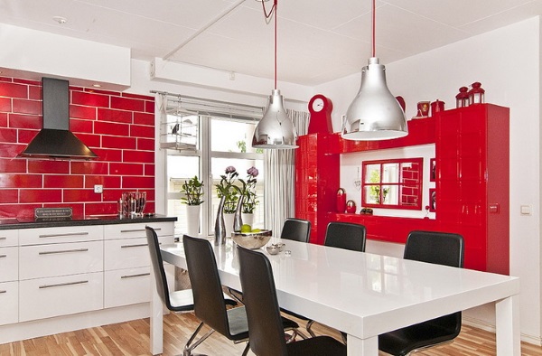 Современный дизайн красно-белой кухни — 12 фото-идей