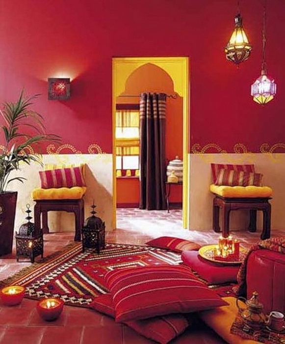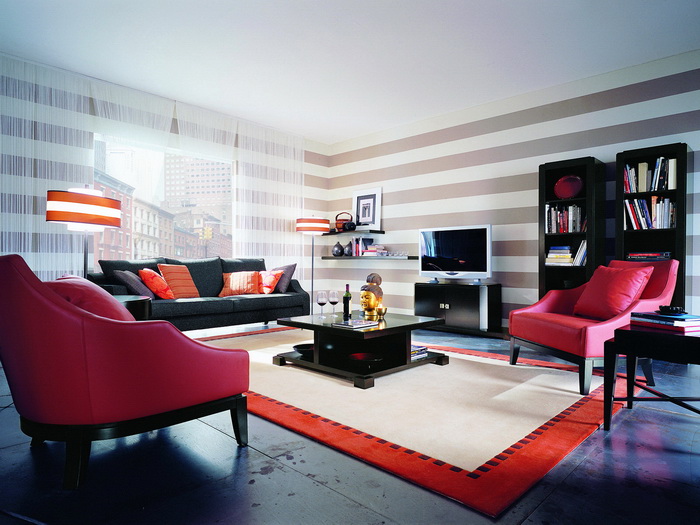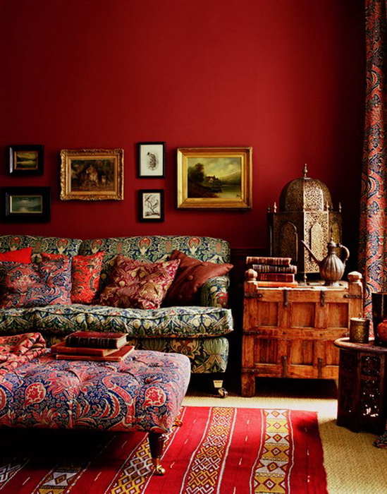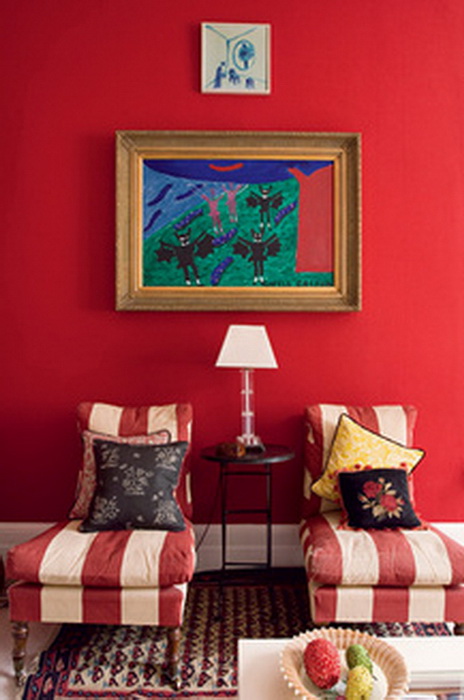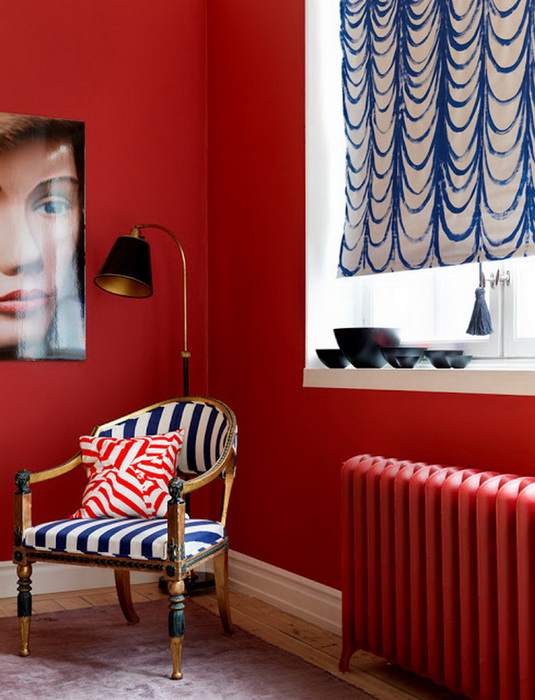 Красный – взрыв эмоций, энергии, любви. Во многих светских, благородных домах существовали красные гостиные. Красный – цвет благородства. Он не терпит рядом с собой никакой дешевизны. Красный – цвет торжества. Если хочется создать праздничный, величественный интерьер, красный цвет решает эти задачи. Красный в сочетании с цветом благородного дерева и золота — дворцовый, театральный интерьер. Красный делает интерьер не только эффектным, но и теплым. Красный цвет хорош в тех помещениях, где проходит самая активная жизнь семьи. С помощью красного можно создавать различные эффекты, оживлять интерьер, волновать человека, создавать атмосферу теплоты.