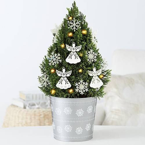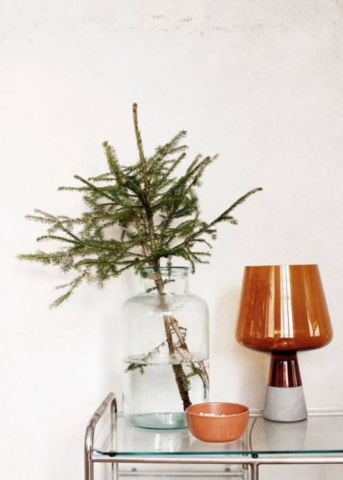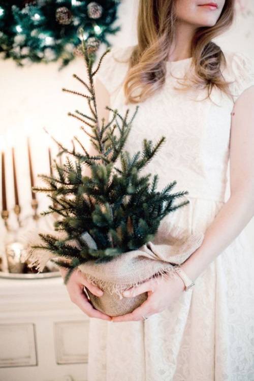 Вместо того чтобы возиться с большой елкой, почему бы не обойтись маленьким вечнозеленым деревцем или даже его веточкой? В красивом горшке или вазе оно будет создавать праздничное настроение даже без ярких украшений.