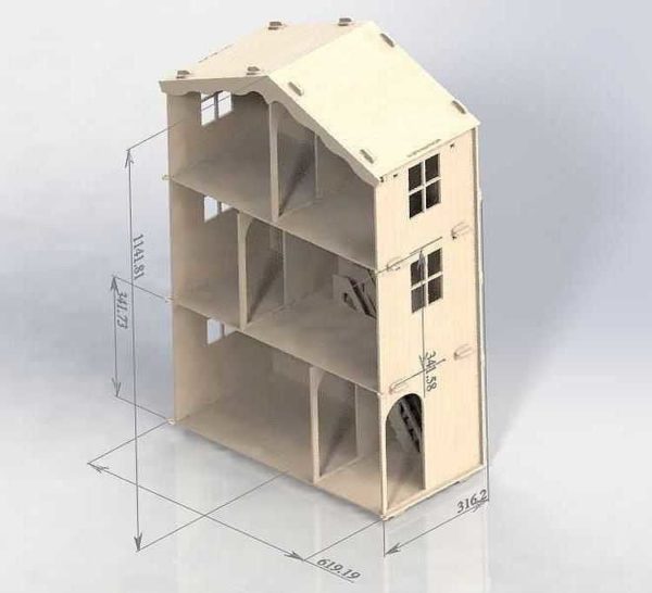 Первое, с чего надо начинать строительство домика для кукол — создание проекта. Надо определиться с высотой и количеством этажей, шириной помещения, типом крыши, будет или нет подвальный этаж. Выбираете этажность по желанию. Это произвольно, но все другие параметры надо рассчитывать.
