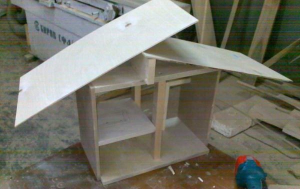 • ДСП обычная или ламинированная (ЛДСП). Плюс этого материала — он уже может быть с финишной отделкой. При желании можно заказать распиловку всей «коробки» домика с поклейкой кромки в какой-нибудь мебельной фирме. Останется тогда только собрать. Причем можно будет использовать саморезы или мебельную фурнитуру. Минусов три — слишком толстый материал, из-за чего возрастает масса, выделения формальдегида и хрупкость при боковых нагрузках. Если с толщиной и массой можно смириться, то выделение формальдегида игнорировать не стоит. Надо искать с классом эмиссии E0-E1. С хрупкостью, к сожалению, ничего не сделаешь. Разве что использовать для соединения деталей уголки, а это не слишком красиво.