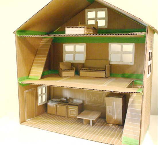 Домик для Барби или других не очень больших кукол можно сделать из картона