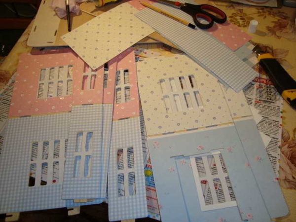 Если вы выбрали вариант «поклеить обои», проще сделать это до этапа сборки. Даже если этажей несколько, заготовки расчерчивают, клеят обои. Это намного проще, чем потом пытаться оклеить углы.