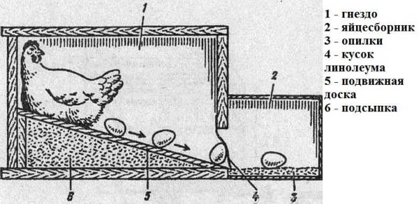 Так как яйца скатываются и  их птица не видит, они могут отказаться нестись в таких гнездах. В этом случае можно сделать муляж яйца  — из плотного пенопласта в полный размер или из бумаги вырезать трафарет — и приклеить его к дну. Это срабатывает почти всегда.