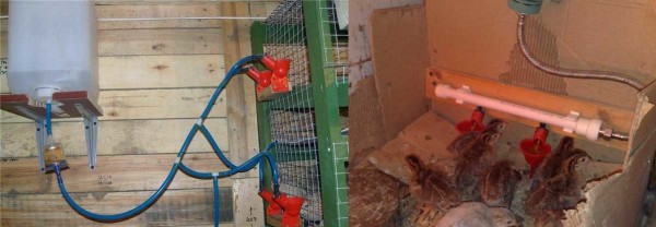 Они позволяют напоить птиц без брызг. Вода подается в чашку, она под действием силы тяжести наклоняется, перекрывая подачу. Воду выпили, чашка приподнялась, вода снова поступает. К боковому штуцеру подсоединяется шланг, второй конец которого находится в емкости с водой, которая стоять должна выше уровня поилок. Удобно и экономно.
