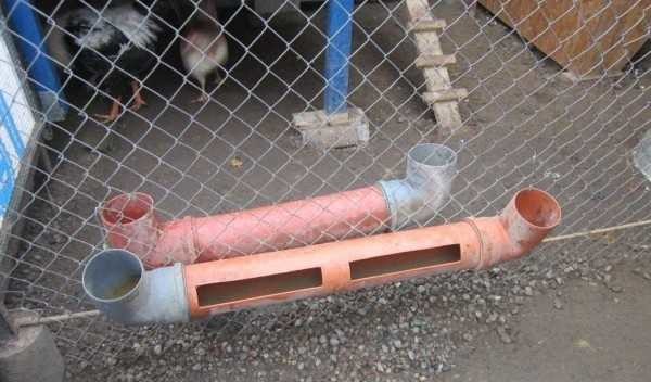 Кормушка для курятника из пластиковой трубы. Подойдет и как поилка