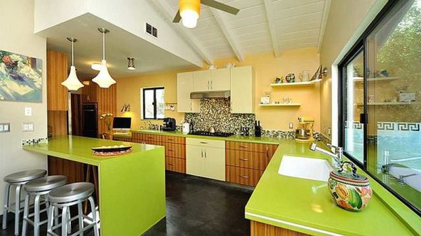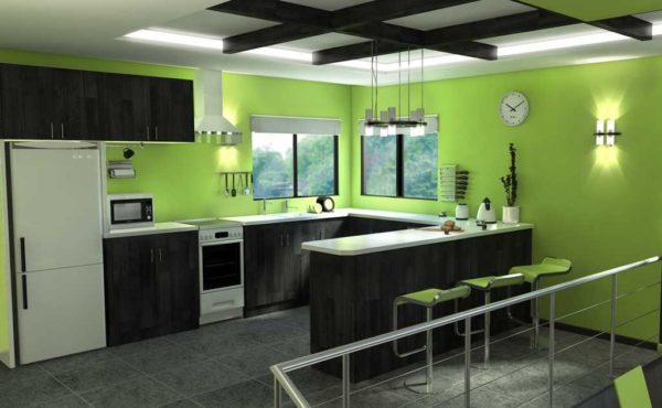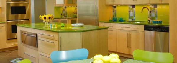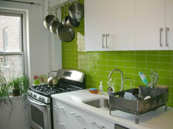 Цвет зеленое яблоко на кухне: достаточно яркий и не надоедает