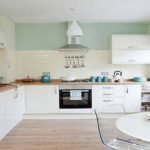 Есть еще способ убедиться понравится ли вам кухня в зеленых тонах — сделать такими только легкозаменяемые детали интерьера. К таким можно отнести стены под покраску или обои, столешницу, некоторые варианты кухонного фартука (пластик, стекло, МДФ).