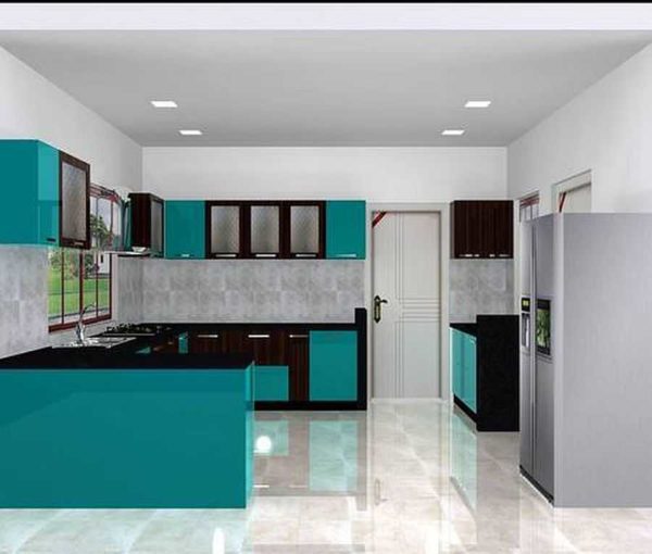 Сине-зеленый… очень необычный цвет для кухни