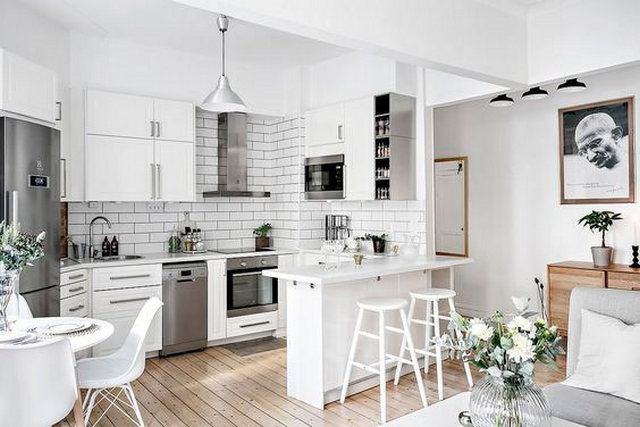Скандинавский стиль в интерьере кухни, как никакой другой, способен наполнить ваш дом уютом и придать изюминку вашей кухне. Белоснежный, базовый для скандинавского стиля, цвет также визуально расширит пространство и сделает вашу кухню просторней.