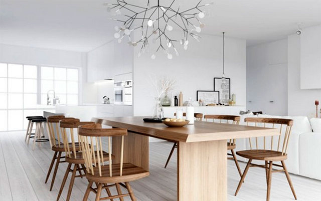 Да, эко дизайны сейчас в тренде, ничего не скажешь. Скандинавский стиль в интерьере кухни поддерживает постулаты об эко-оформлении дома как нельзя лучше. Дерево, природные текстуры, декор изо мха — это стильно, ничего не попишешь.