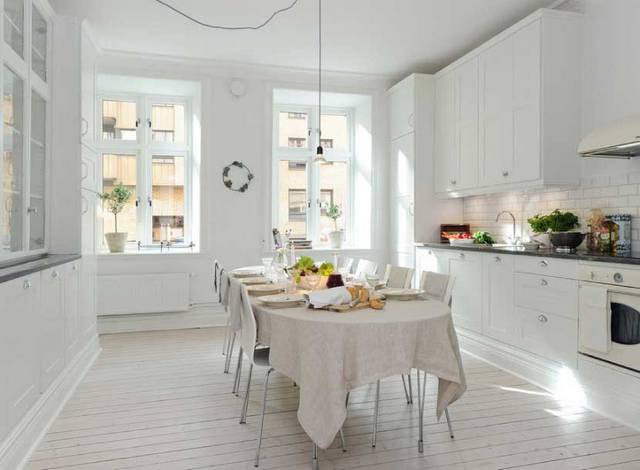 Визуальное увеличение пространства также является заслугой белого цвета в скандинавской кухне.