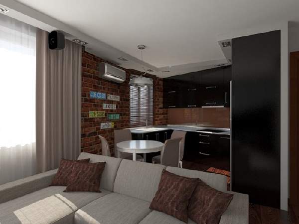Кухня-гостиная 20 кв м: дизайн в стиле лофт