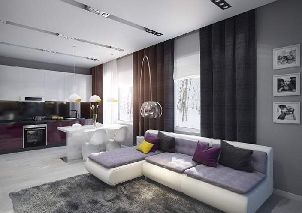 Пожалуй, минимализм — это как раз наиболее подходящий стиль для оформления небольшого помещения с несколькими функциональными зонами. Он не отличается пышностью интерьера, а, наоборот, предполагает минимум декора и простые неброские цвета. Мебель, как правило, имеет строгие формы, ровные поверхности и выглядит очень лаконично.