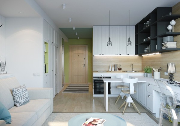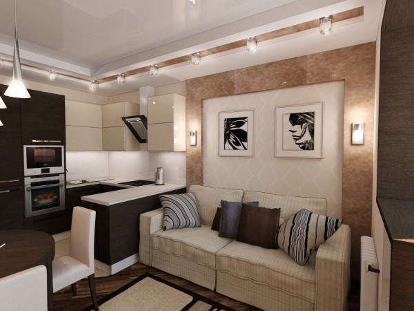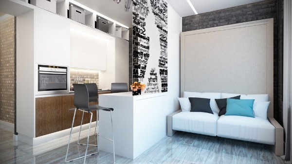 Дизайн студии: кухня с гостиной (30-ть квадратов)