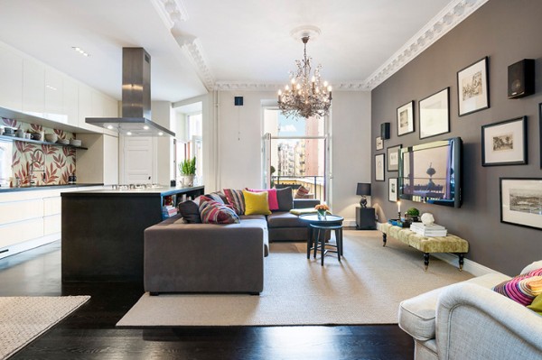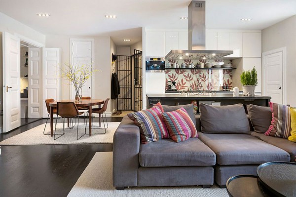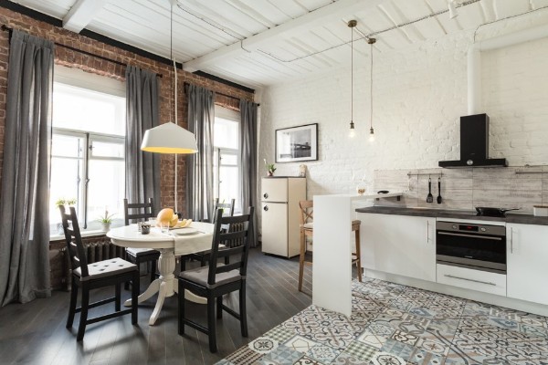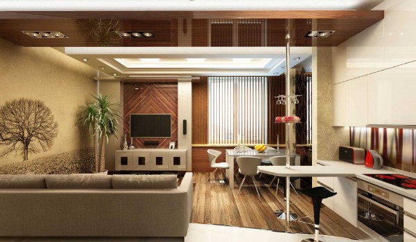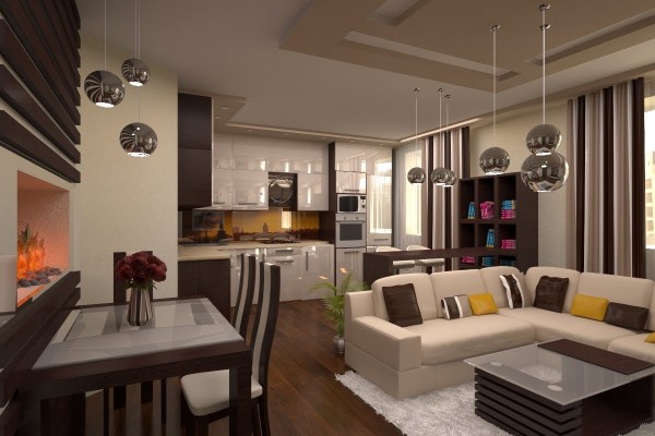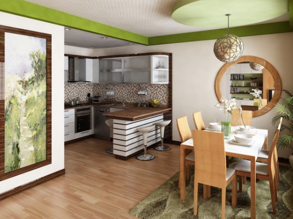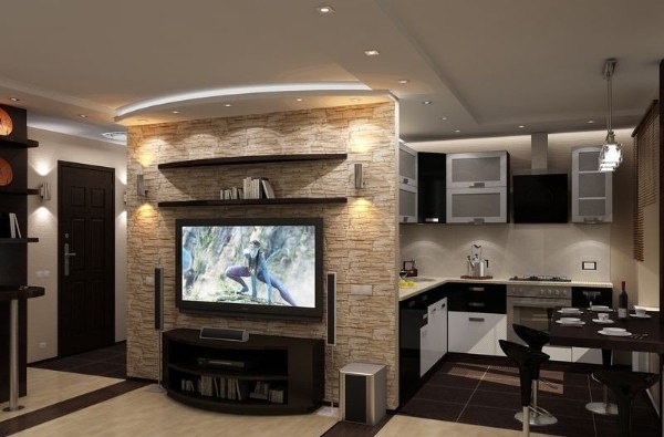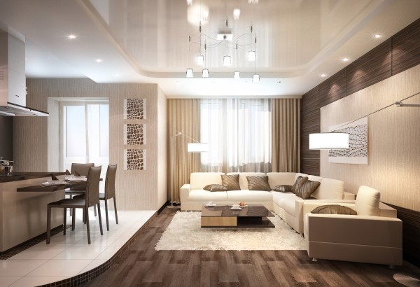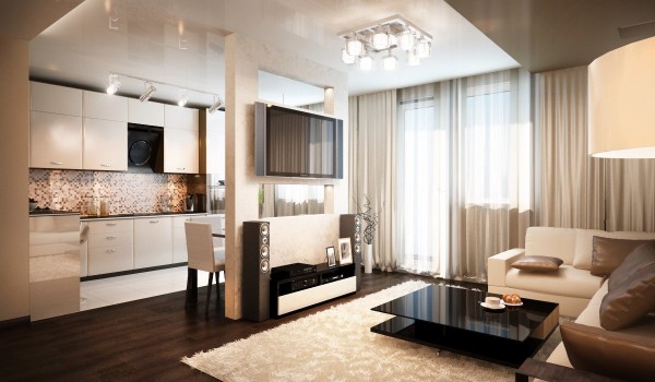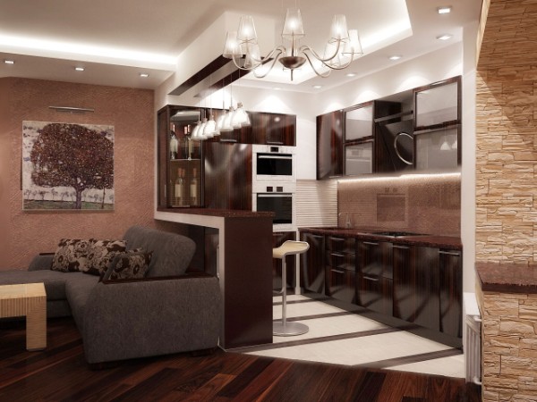 Кухня, совмещенная с гостиной — визуальное разделение зон в студии