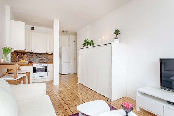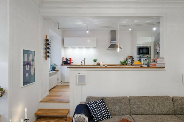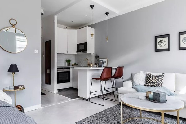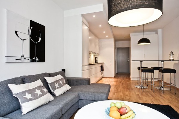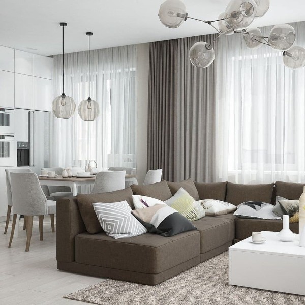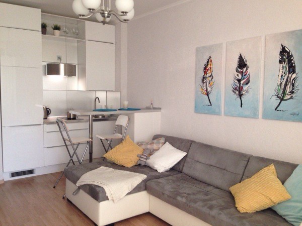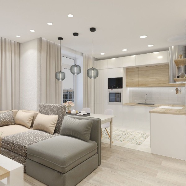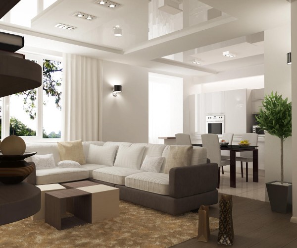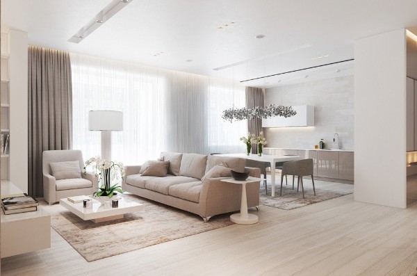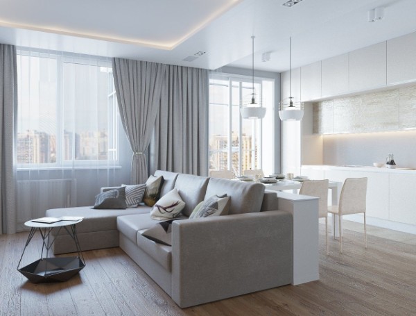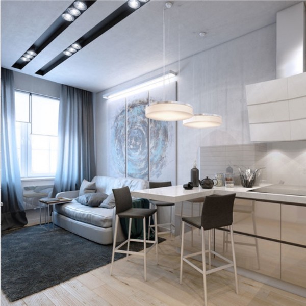 Если в вашем распоряжении не больше 18−20 кв., то дизайн гостиной-студии с кухней лучше выполнить в светлых тонах. Это зрительно сделает пространство выше и шире. Вот, кстати, примеры на фото.