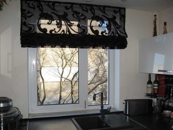 Прежде всего нужно выбрать тип штор. Далее — определяетесь с цветом и рисунком, фактурой и плотностью ткани. Современные шторы на кухню делают как из синтетических, так и из натуральных тканей, а также смесей натуральных и искусственных волокон. Если подходить к выбору с точки зрения практичности, то синтетические и составные, наверное, предпочтительнее: они отстирываются проще, дольше сохраняют внешний вид. Что хорошо, что они могут быть как с блеском, так и матовыми — можно подобрать под любой стиль оформления кухни.
