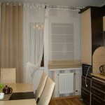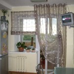 Так как площадь окна в невелика, желательно по максимуму впустить свет. Поэтому выбирают из легких, полупрозрачных тканей. Тюлевые шторы или из органзы в этом случае — то что нужно. Идеи оформления окна в маленькой кухне смотрите на следующих фото.