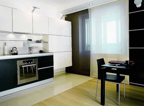 Теперь о выборе длины. Чаще всего современные шторы на кухню делают короткими: длинной до подоконника. Во-первых , это практично: ткань меньше пачкается. Во-вторых, редко кто из хозяек может сказать, что кухня просторная. Вот потому и пытаются «освоить» каждый метр пространства. И подоконник в том числе. При коротких шторах это возможно, с длинными все намного сложнее. Но снова-таки есть исключения и на кухне вешают длинные портьеры и/или тюль.
