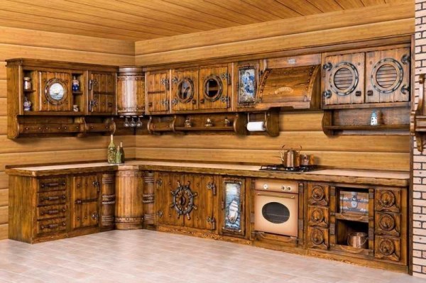 Один из тематических вариантов деревянной кухонной мебели: кухня в морском стиле