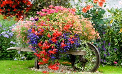 Для оформления клумб, нужно использовать простые цветы, которые не требуют постоянного ухода и больших денежных вложений. Взглянув на такой сад, можно подумать, что всю эту красоту создала сама природа, т.е. оформление должно быть немного небрежным.