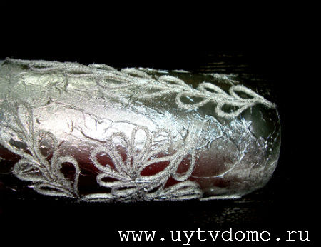 После того, как узор будет полностью сформирован, красим вазочку из баллончика в подходящий цвет (я люблю цвет металлик, поэтому использую хромированную краску).