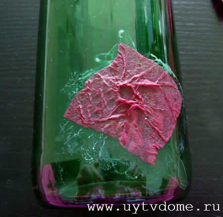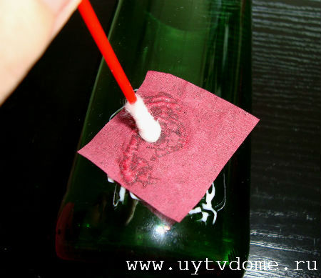 Оклеив всю бутылку салфетками, оставляем ее просушиваться (процесс сушки займет примерно 4 часа).