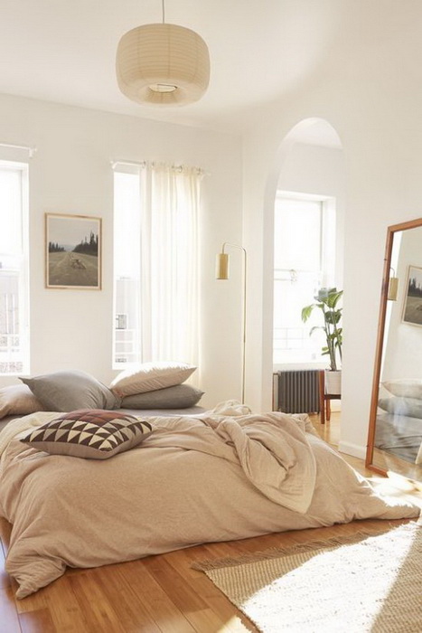 Данное решение идеально впишется в самые модные стили интерьера: бохо, лофт,минимализм и скандинавский. Даже спальня в утонченном французском стиле может хорошо смотреться без кровати.