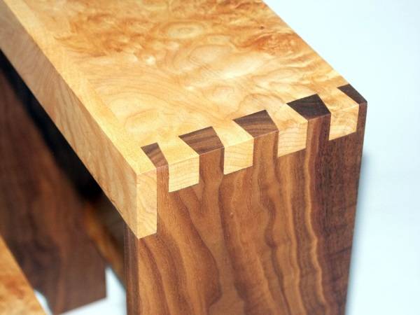«Паз-шип» и «ласточкин хвост» являются двумя старейшими способами объединения деревянных частей, а также самыми прочными и наиболее красивыми соединениями. Неплохое сцепление также дают дюбели или шурупы, но ни в коем случае не степлер. Кроме того, в качественной мебели не должно быть заметно применение клея.
