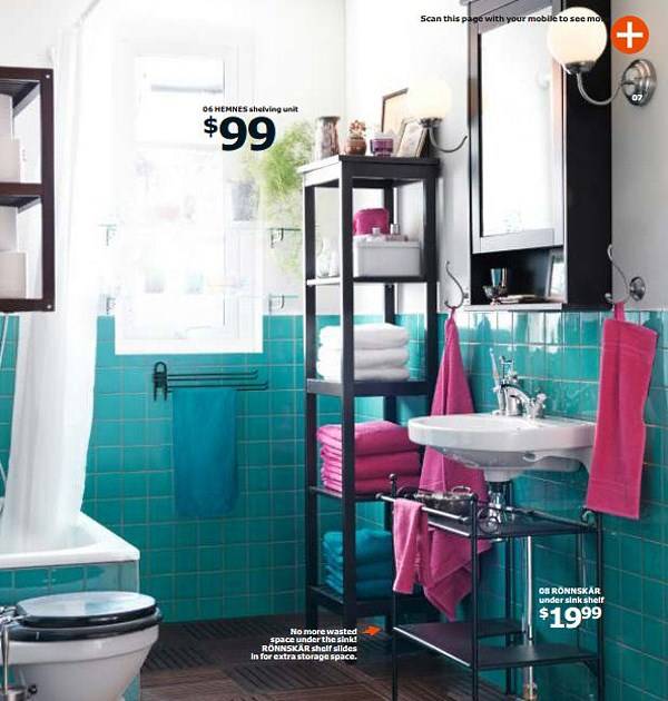 Следующее видео посвящено мебели для ванной комнаты. Подчеркнутый контраст «мы/я» намекает на то, что мебель IKEA прекрасно подходит для любых индивидуальных потребностей. Обычная на первый взгляд ванная комната отличается освежающим сочетанием бирюзового и ярко белого оттенков. Ванна на ножках выглядит в ней так, будто никогда не выходила из моды, и хорошо гармонирует с чистыми современными линиями мебели.