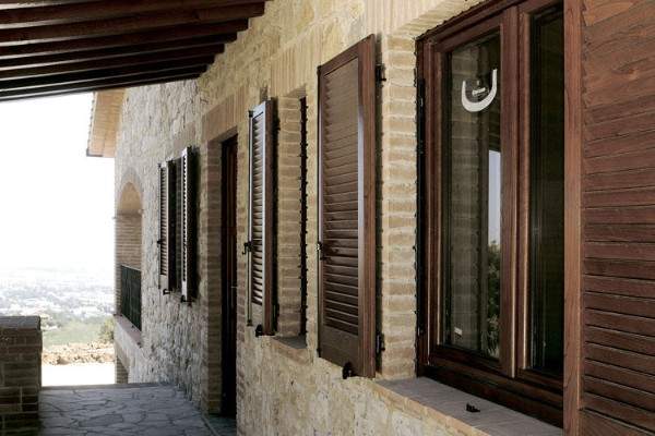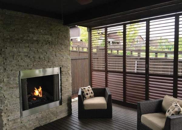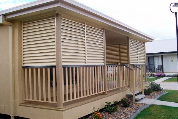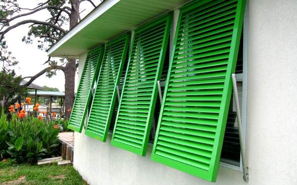 Хорошо сочетаются с окружающим ландшафтом жалюзи, выполненные в коричневых тонах. Также популярны черные, кремовые и серые модели.