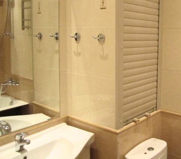 В ванной комнате часто возникает эстетическая проблема: куда спрятать водонагревательный бак и трубы. Металлические вертикальные жалюзи в этом случае — идеальный вариант. Они не только скроют неприглядные коммуникации, но и предоставят возможность легкого доступа для проведения ревизии.