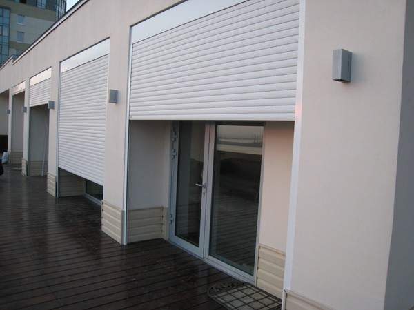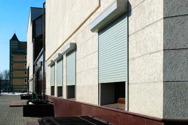 Подобные конструкции специально созданы для защиты вашей собственности. Открывание происходит путем сматывания защитного полотна в рулон. Жалюзи легкие с приятным внешним видом и при этом надежные. Посмотрите на фото: здание даже выигрывает в эстетическом плане.